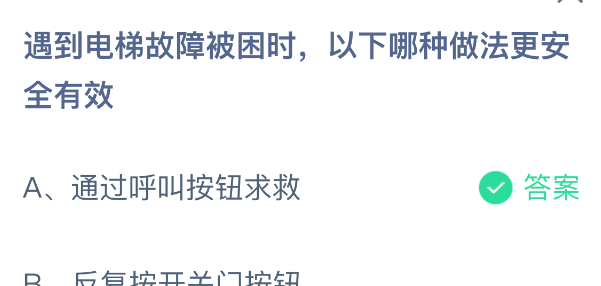以上就是遇到电梯故障被困时,以下哪种做法更安全有效,支付宝蚂蚁庄园2025年12月27答案最新,更多精彩内容,请点击关注更新!
