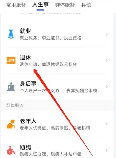 选择【退休】选项点击跳转进入进行下一步操作;