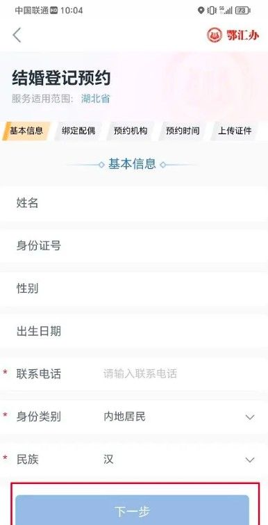 进去之后,填写信息,可以进行预约结婚登记