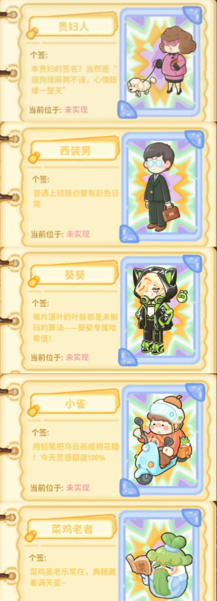 当前版本已实装的“贺卡任务线”,是解锁海报剧情的关键前置环节。任务对象涵盖西装男(位于温馨的家园)、贵夫人、葵葵(街区)、菜鸡老者、小雀(均位于品质社区)等5名目标NPC。玩家需先向他们每人赠送一张空白贺卡,触发“5张有字贺卡”任务目标;随后必须将这5张已书写内容的贺卡统一赠予云彩,方能激活下一阶段。