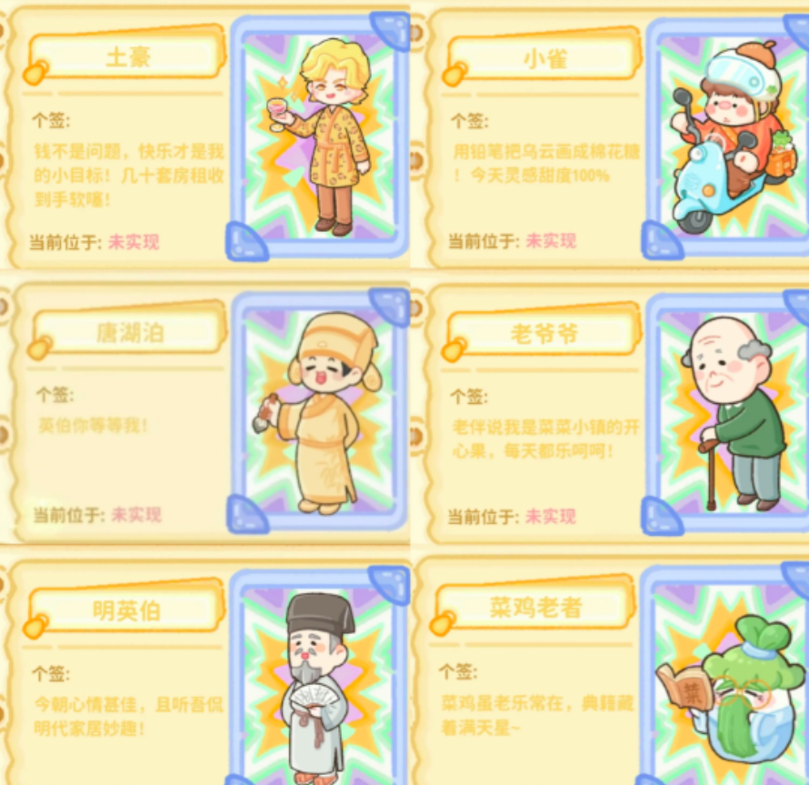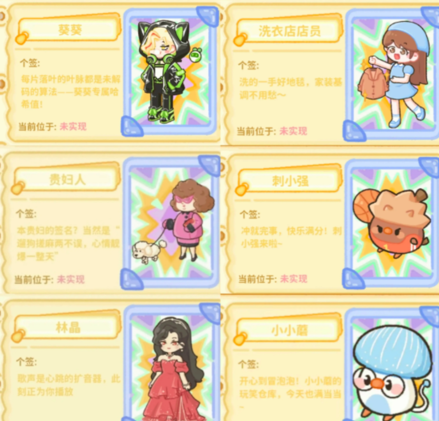 随着玩家等级提升,高等级公寓区域逐步开放,同步引入新一批NPC:土豪、糖琥珀、老爷爷、明英伯、菜鸡老者与小瓜鸡。他们分布于不同功能空间,提供差异化任务类型与奖励结构。此外,主街区作为中后期高频活动区域,汇集葵葵、林晶、贵夫人、云彩、洗衣店的店员、小小蘑及茶小菜等角色,形成密集的任务网络,支撑玩家持续成长与剧情深化。