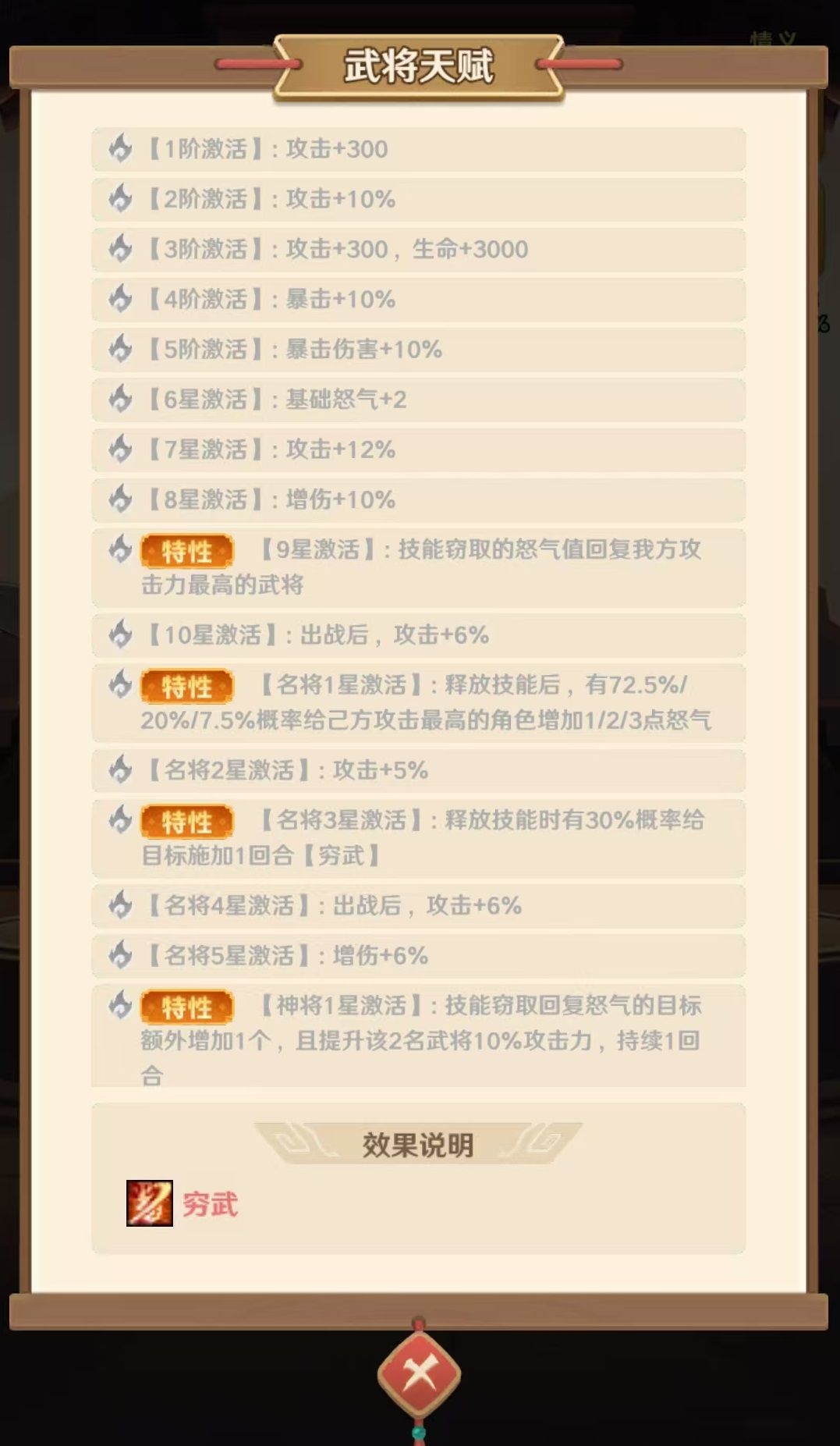 当孙尚香升到九星时实现质变,此时偷取怒气可以全额转给己方攻击最高的武将,大大加快了主c的爆发节奏。后续升到名将一星和名将三星时,也都有很强的提升,所以是一个值得在后期使用的武将。养成方面优先拉到九星,然后再冲名将一星,这样对团队的效果能发挥到最高。潜能方面选择暴击伤害和怒气获取等类型。鱼类选择物攻方向,例如帝王蟹、金鳟等,还可以选择锯鲨、梭鱼或大青蟹。装备和神兵方面也是优先物攻、暴击、怒气回复等属性,为的就是强化大招循环和爆发能力。