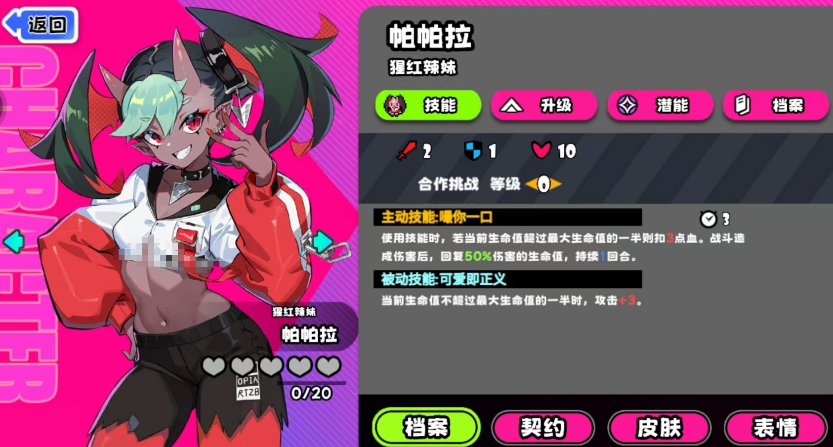 而在实战中,帕帕拉可主动去触发一些扣血事件,降低自己的血量,好让自己在快与对手相遇时能开启主动技把血量降低吃到被动,并在战斗后顺利完成回血。当然了,要是各位已经激活了帕帕拉的潜能,那在开启主动技后,她的血量会一直视为半血以下,可直接触发被动,不用再去寻求扣血。此外,若各位已经升级了帕帕拉,还能吃到各等级提供的加攻效果,再次增高帕帕拉在战斗中的伤害,甚至还能享受到移动力的提升,方便她在自己回合内更容易追上对手。