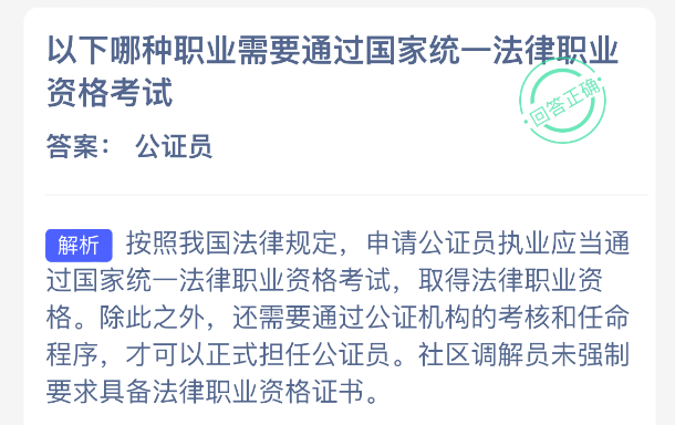 以上就是以下哪种职业需要通过国家统一法律职业资格考试?支付宝蚂蚁新村最新答案2025年12月30日,更多精彩内容,请点击关注更新!