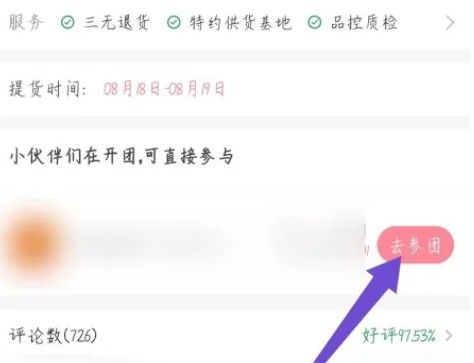 在打开的商品详情页面,如果有团,点击去参团。