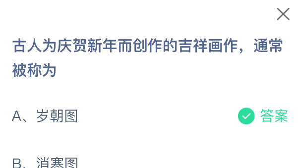 以上就是古人为庆贺新年而创作的吉祥画作,通常被称为,支付宝蚂蚁庄园2026年1月1日答案最新,更多精彩内容,请点击关注更新!