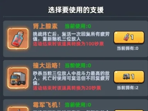 ①肾上腺素:挑战阵亡后,复活一次回复所有疲劳值,重新随机三位敌人。活动结束时该道具转换为100钞票。
