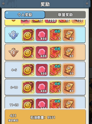 排行奖励分为个人奖励和联盟奖励,个人排名第一的玩家可以获得[石油镇·2跨领地](PVP战斗开始4秒内,我方全体可累计免疫10次伤害,免疫伤害结束前获得15%PVP伤害增加,结束后获得15%PVP伤害减免,持续8秒,该效果每30秒可触发一次)。