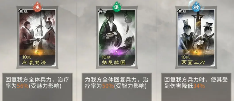 这个分摊的伤害数值上面当然也可以是作为减轻一般的伤害效果,当然这个结义是只能同时触发使用一层的,并不能让刘备同时跟其他的角色所有的伤害全部反弹掉,所以这样一个觉醒技能其实也是可以让他在仁德的层数上面利用性更高一些,另外结义效果在分摊伤害的时候,也可以弥补刘备在仁德层数上面获取比较慢的一个弱点,此时给大家也会带来足够的保人机制,之后刘备可以适配的阵容,大家就可以根据不同的技巧来进行搭配,比如说大家可以搭配黄月英以及诸葛亮,这样的话其中能够带的一些技能,大家可以利用刘备的主要技能携带合众攻击,被动技能带两面三刀,追击就靠扶危救困。