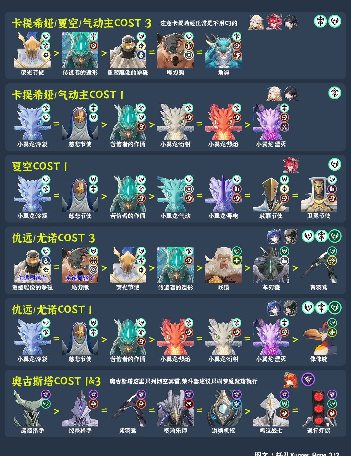 ⑥ 3+2套装角色建议C3和C1一种套装各用一个,这样培养时有容错。
