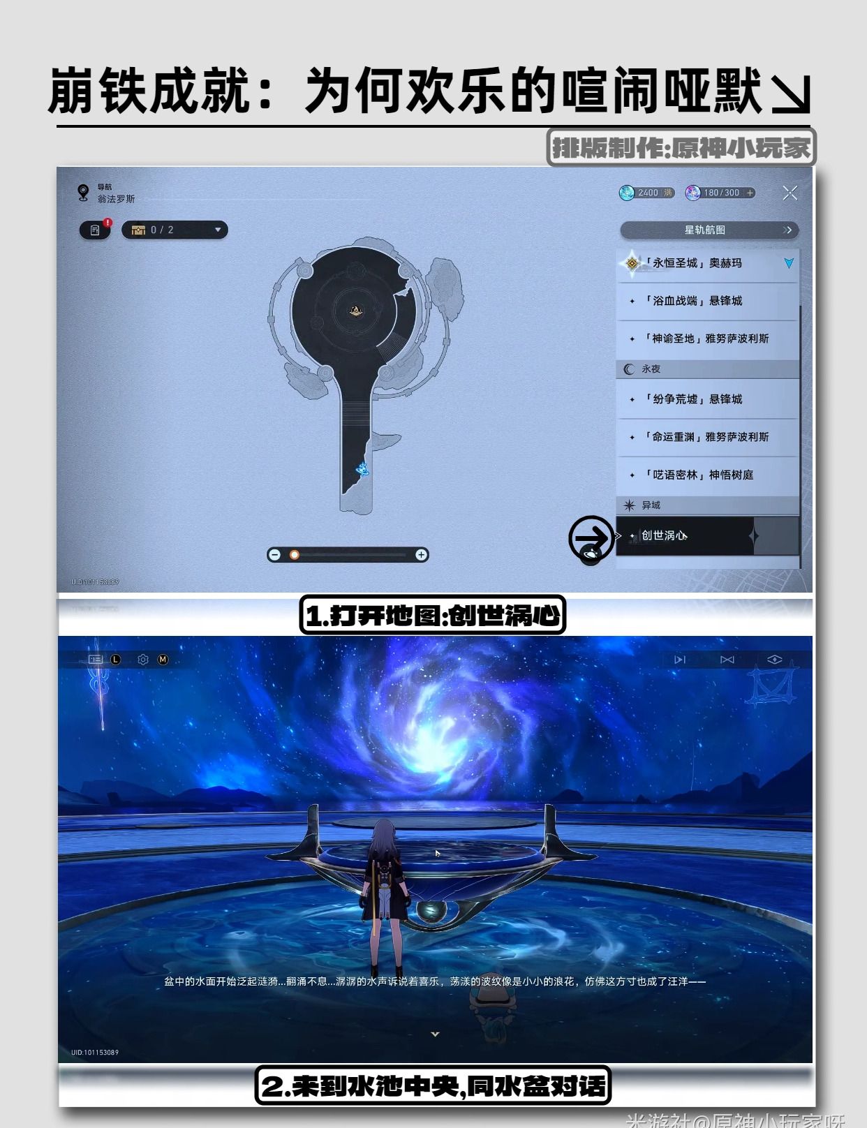 崩坏星穹铁道为何欢乐的喧闹哑默成就怎么解锁,玩家打开地图:创世涡心,来到水池中央,同水盆对话,对话完成再对话一次,在最后一次完成对话后就可以获得为何欢乐的喧闹哑默成就。