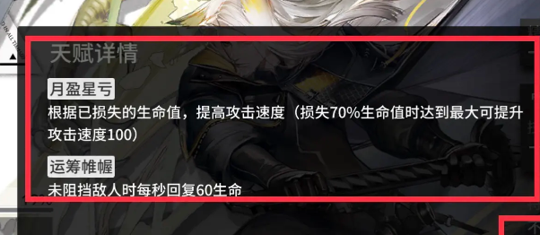赫拉格的魅力就在于双天赋,月盈星亏,让他损失的生命值越多,攻击的速度也就越快。血线下降到30%攻击的速度直接翻倍,能够实现残血等同于巅峰。运筹帷幄,可以让他脱离战斗时持续回血,搭配普通攻击自带的回血效果,让他无需绑定奶妈,照样也可以维持生存。两人的战斗力只占一个部署位置,性价比比较出色。这一种设定注定了他遇强则强的代表,血线压到30%的时候,输出和回血的速度就可以得到保障。如果没能压低血量,他的输出又会显得平平无奇。