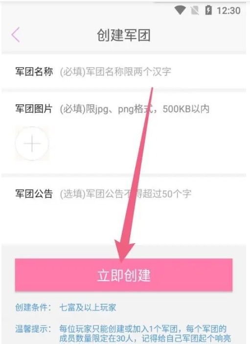 输入军团名称点击“立即创建”