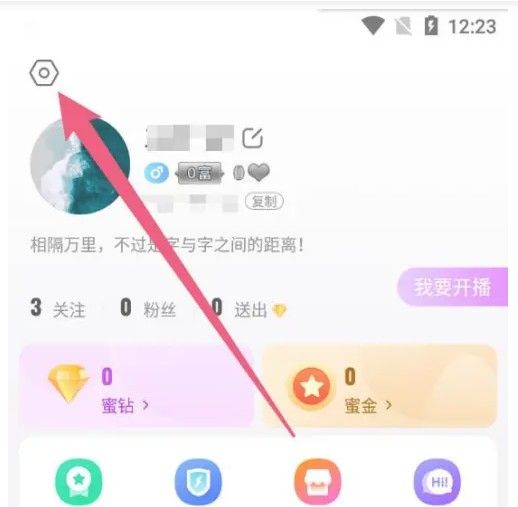 进入蜜疯直播点击设置
