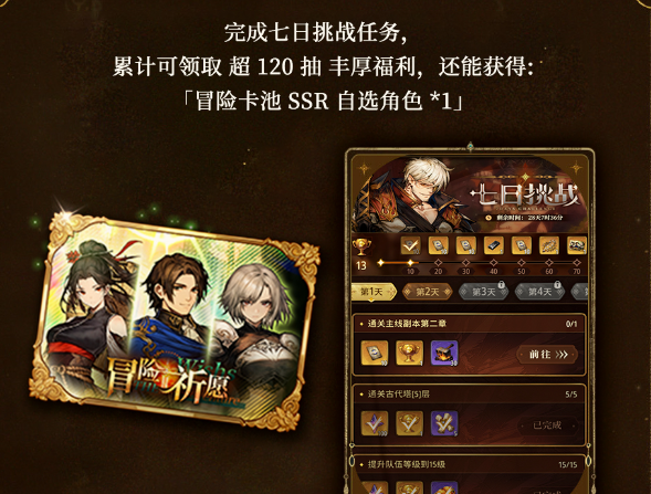 限定池子30抽保底必出SSR,抽到人物送武器,200抽1井(10/50/100一共送20抽),始源卡池持续2周