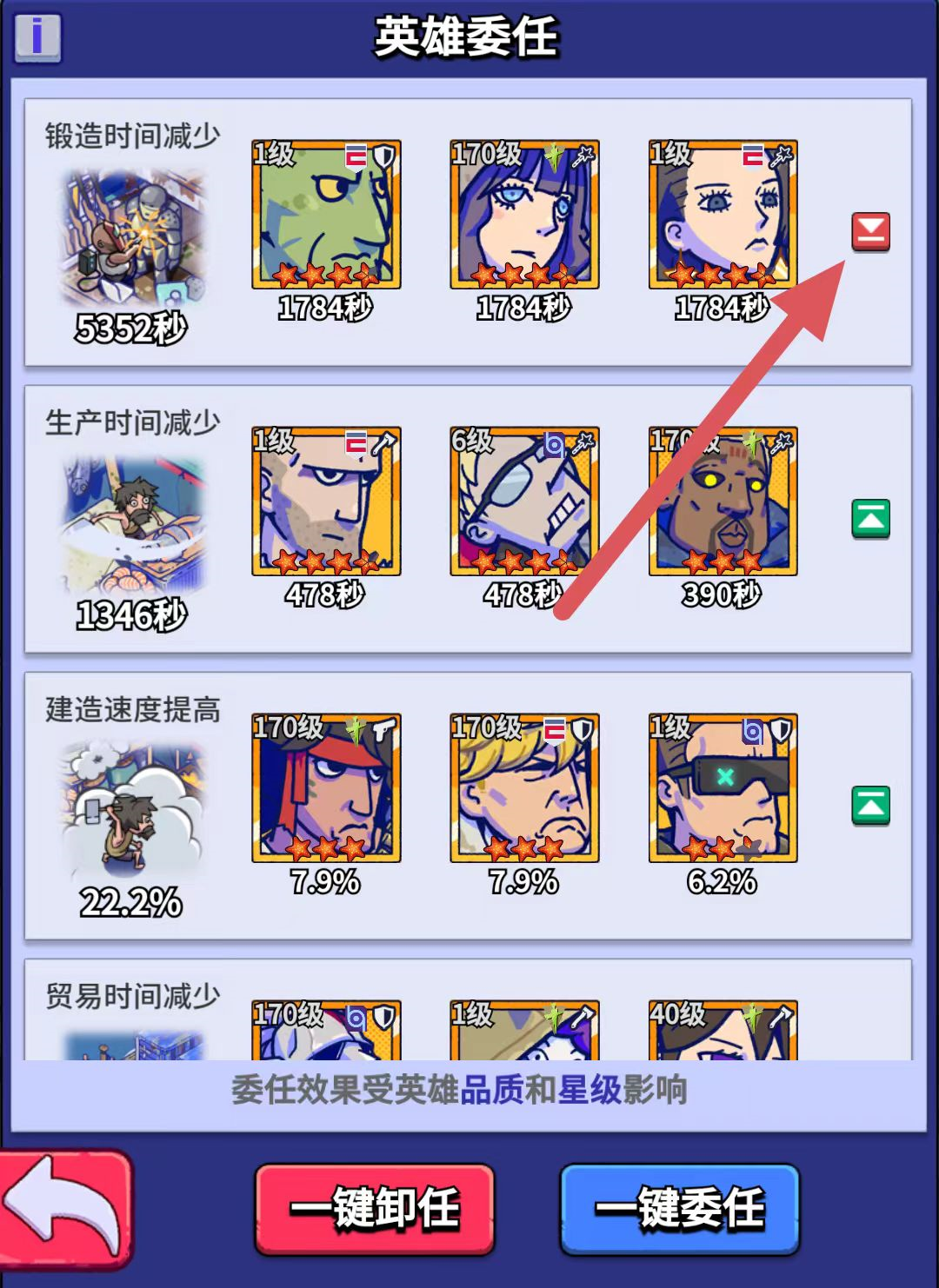 ③ 如遇到周活动装备锻造榜等,需要短时间锻造大量装备 ,可以在英雄委托中将锻造时间委托置顶,再一键委任,即可达成三秒一件蓝装。