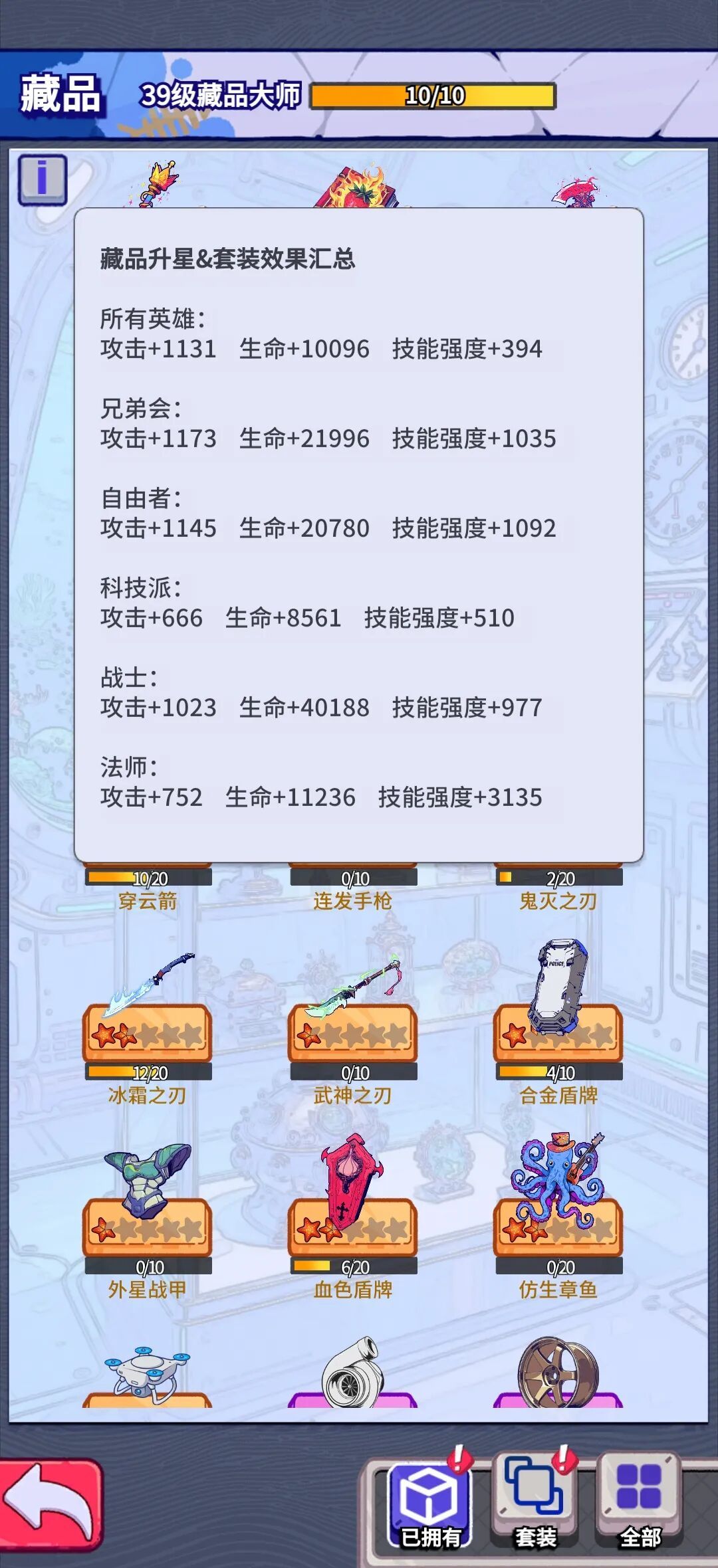 3、建议藏品等级、套装平均提升