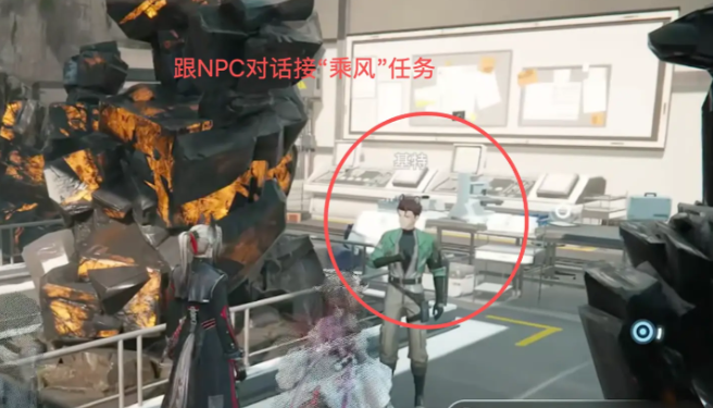 想要开启这条探索线路,得先找到地图标注的地下入口,进入到下层区域。这里也提醒一句,电梯在启动之前,要仔细确认周围的环境,避免遭遇敌人的袭击。虽然在目前测试阶段,敌人的密度并不算很高,但提前清理,那后续探索就更轻松。抵达地下之后首先就要找到npc,然后接取乘风任务,这是一个关键前提可以解锁后续的宝箱区域少了这一步就无法进行推进。