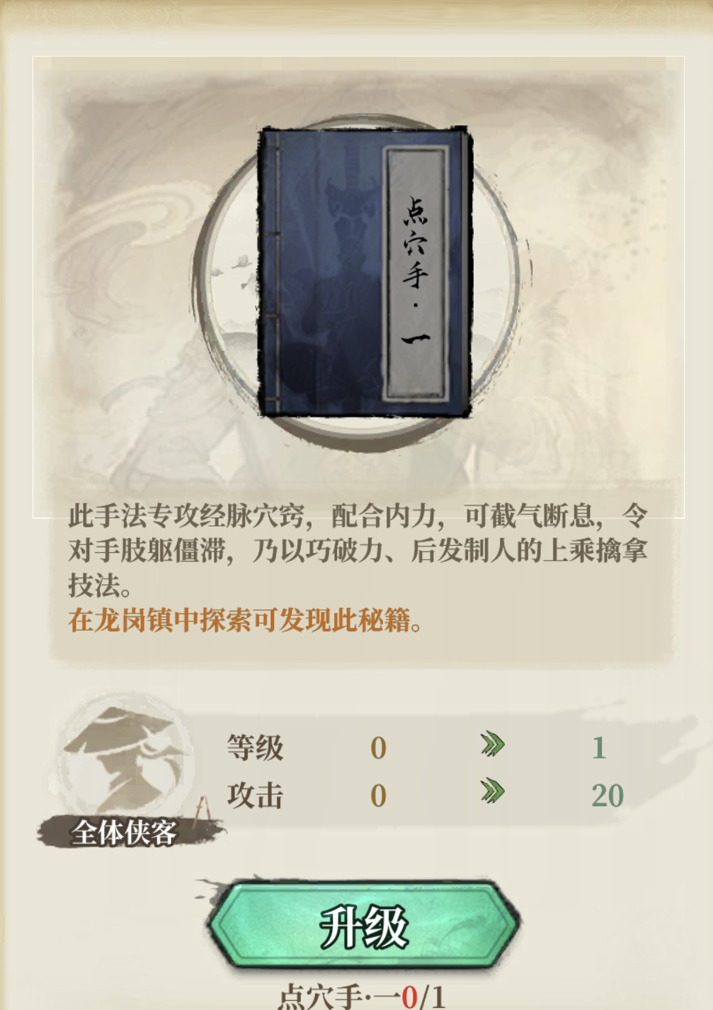 每次挑战成功,侠客会用他的【秘籍】回礼,此时少侠们可以到【修行-秘籍】中使用秘籍提升队伍战斗力。