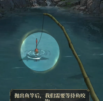 第三步:抛出鱼竿后,我们需要等待鱼咬钩。
