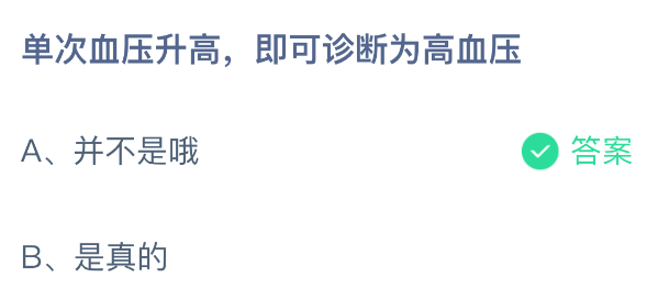 以上就是单次血压升高,即可诊断为高血压,支付宝蚂蚁庄园2026年1月8日答案最新,更多精彩内容,请点击关注更新!