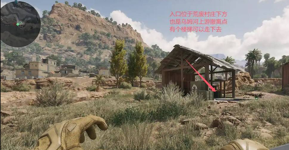1、入口位于荒废村庄下方也是乌姆河上游撤离点有个楼梯可以走下去