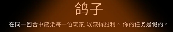 鸽子的技能主要是在同一回合中感染每一位玩家,以获得胜利。你的任务是假的。