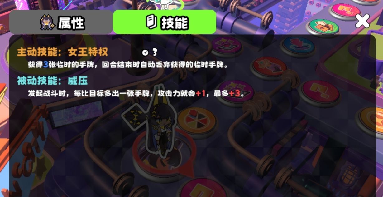 在角色养成路径上,娜蒂斯具备明确的阶段性收益。等级一即可解锁“获得一星时攻击力+1”的基础强化;升至等级二后,新增“获得一星时生命上限+2”,显著提升生存容错率,避免因基础血量不足而被低伤害技能意外击晕;等级三时,初始星币增加6点,大幅优化开局经济配置效率;后续等级四至六则持续强化其后期作战稳定性与资源获取能力,尤其在合作模式中,有助于更稳定地兑换关键道具与强化筹码。