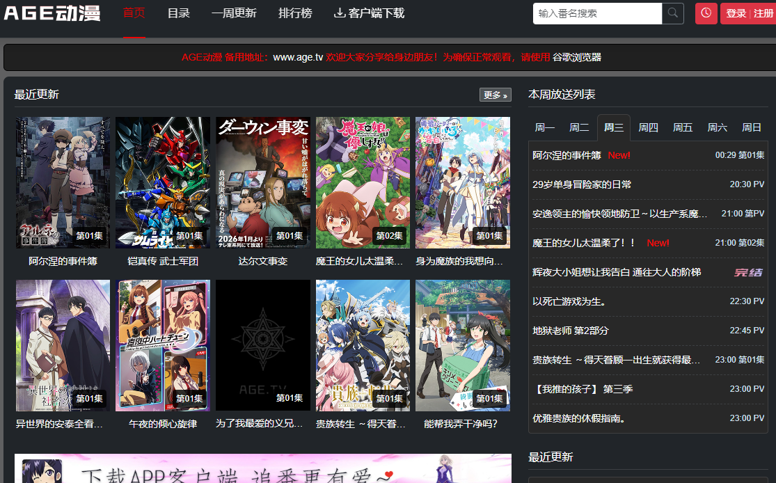 AGE动漫网的官方网站(即网页版)是无需下载、直接通过浏览器访问的在线平台。其入口通常可通过以下方式获取: