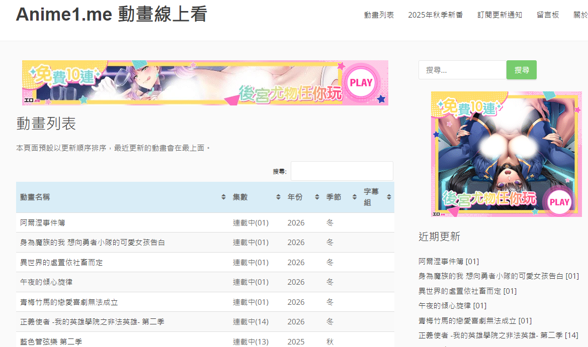 anime1me官网入口登录:https://anime1.me/。Anime平台的核心优势在于其庞大而全面的动漫资源库与灵活个性化的观看体验。无论您钟情于经典的日本动漫,还是偏爱热门的国产动画,亦或是想探索其他地区的作品,这里几乎都能满足您的需求。