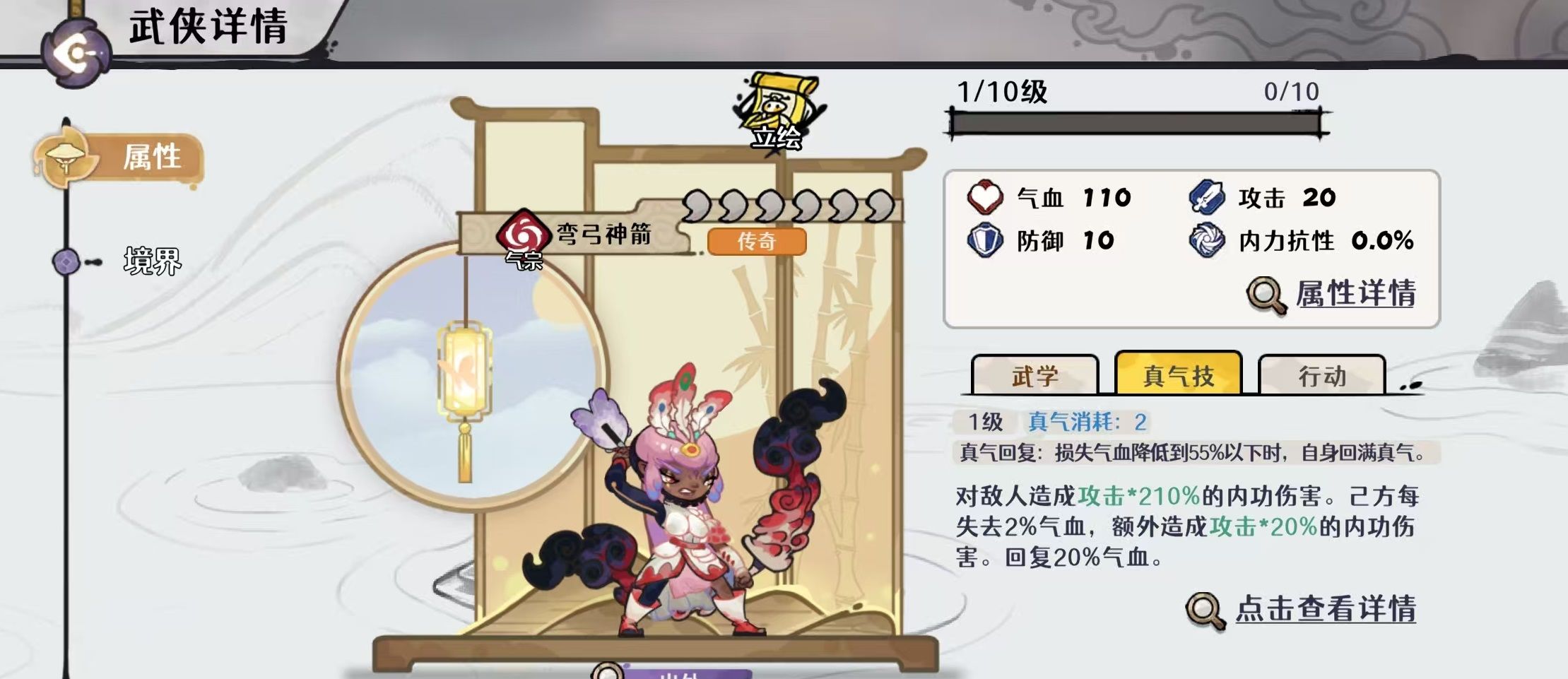 该体系的成型关键,在于天山灵童的机制适配性——其集增伤、治疗、复活、减怒于一体,是维持自残循环稳定运转的核心枢纽。而输出核心弯弓神箭需达成四命状态:战斗开始时,若自身气血高于75%,则立即扣除20%最大气血,并永久提升10%攻击力;每回合开始时,若气血低于55%,则自动恢复至55%。这一“掉血—增伤—回血”闭环,使伤害随回合数呈指数级叠加。辅助位天山灵童建议至少三命,四命效果更优:当任意己方角色气血降至55%以下时,其下一次普攻或武学伤害提升15%。