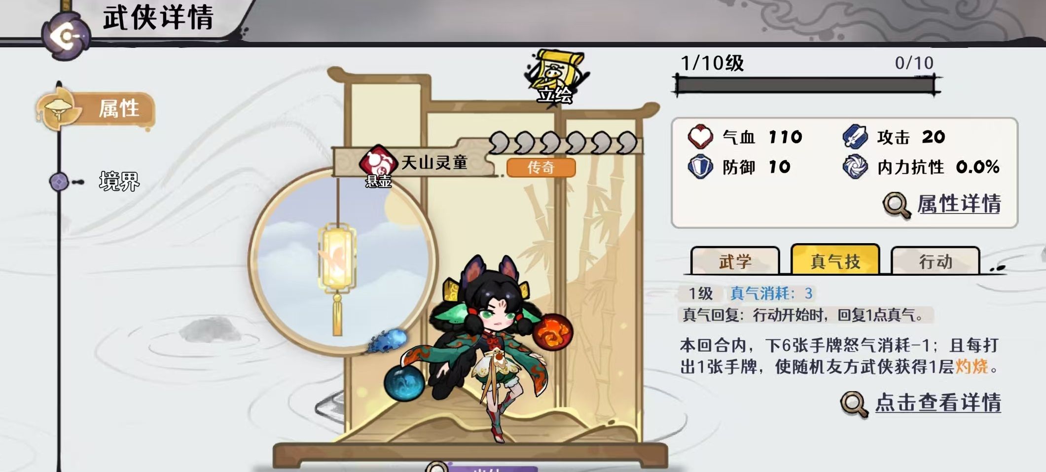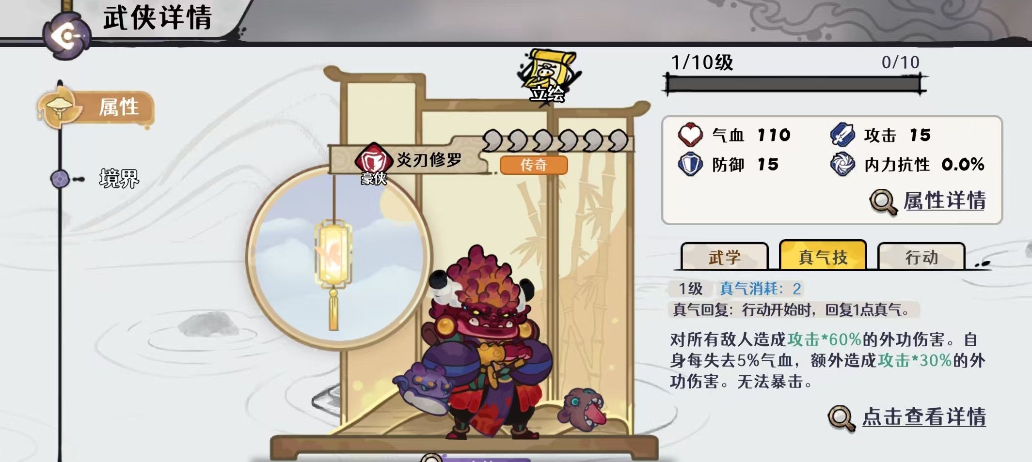 第三位置推荐豪侠炎刃修罗,仅需一命即可生效:释放技能时,为全体敌人施加一层灼烧,同时为己方全体提供持续两回合的50%防御护甲。在神秘搭配方面,优先选择【撤销】,其次可选赤痕、西域、非典或绝情。本体系对神兵兼容性较强,重点在于匹配灼烧、连击、回怒等关键回路——例如失衡可触发灼烧牌回路,西域飞连支持连续打出3/4/5级侠卡并高效回复怒气。