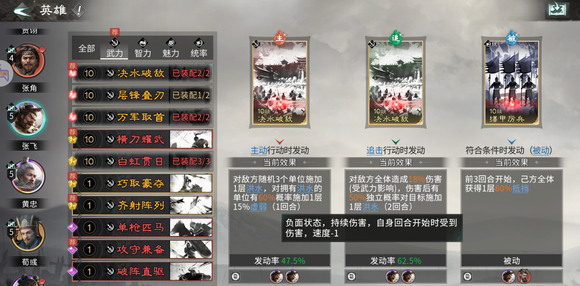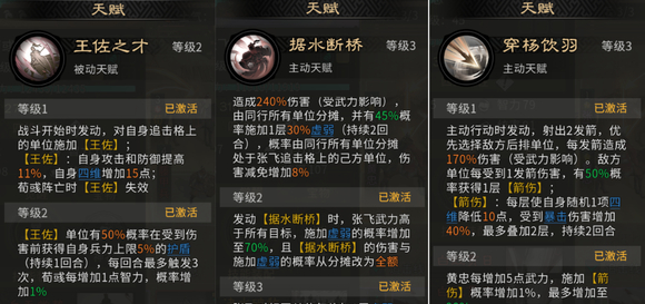 天赋协同是该队爆发力的核心支撑。荀彧天赋“王佐之才”为黄忠提供11%攻击力与防御力加成,并同步提升四项基础属性各15点;张飞天赋可对敌方施加“虚弱”与“易伤”双重减益,既削弱对手输出,又放大我方伤害;而黄忠自身天赋具备精准打击敌方后排单位的机制,与整体战术定位高度契合。