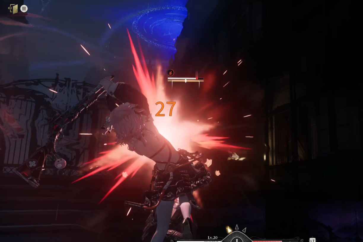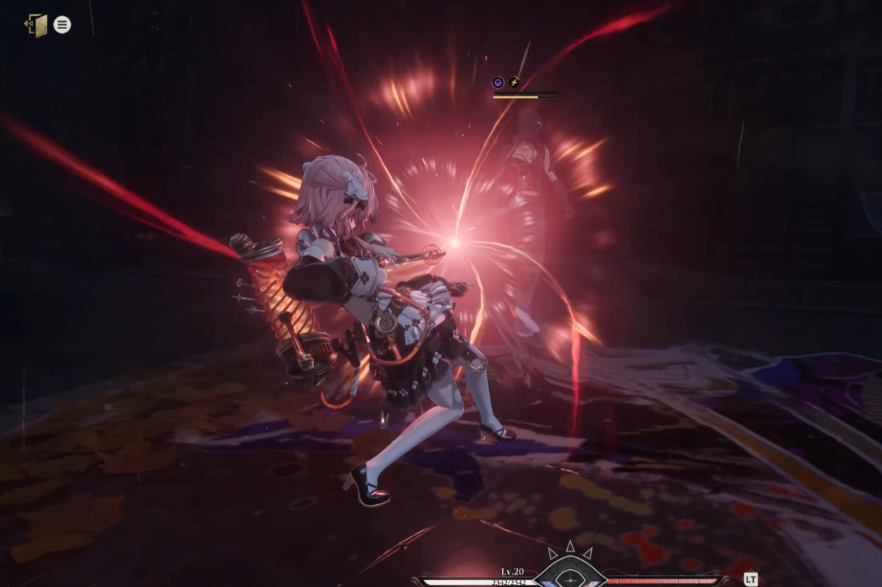 值得注意的是,枪炮师并非纯粹的远程单位。在贴近敌人后,可发动近身反击动作:以枪托自下而上发起上挑攻击,造成硬直并击飞目标;随后自动后撤一段距离,重新进入远程狙击姿态,实现攻防转换的流畅衔接。