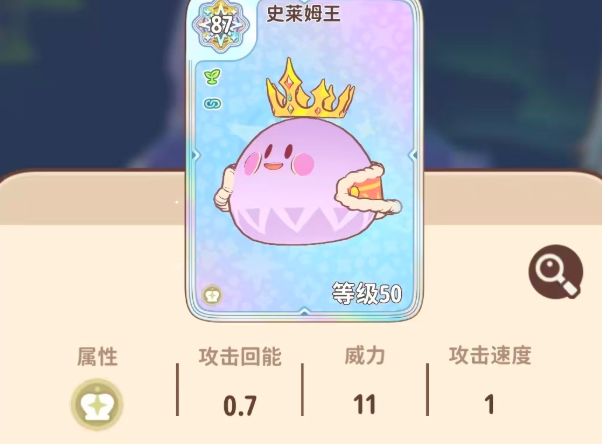 闪耀吧噜咪史莱姆王怎么样?在当前版本中,史莱姆王并非以高资质或神兽头衔吸引目光——其基础资质固定为87,未达神兽级标准(通常≥95),外观也偏萌系,易被误判为功能性辅助宠。但实际定位极为特殊:作为唯一具备“王系”标签的史莱姆系首领单位,它拥有机制层面的不可替代性。属性设计上采用“无克制”逻辑:不被任何常规属性克制,亦不克制其他属性,规避了传统五行/元素链的压制风险。