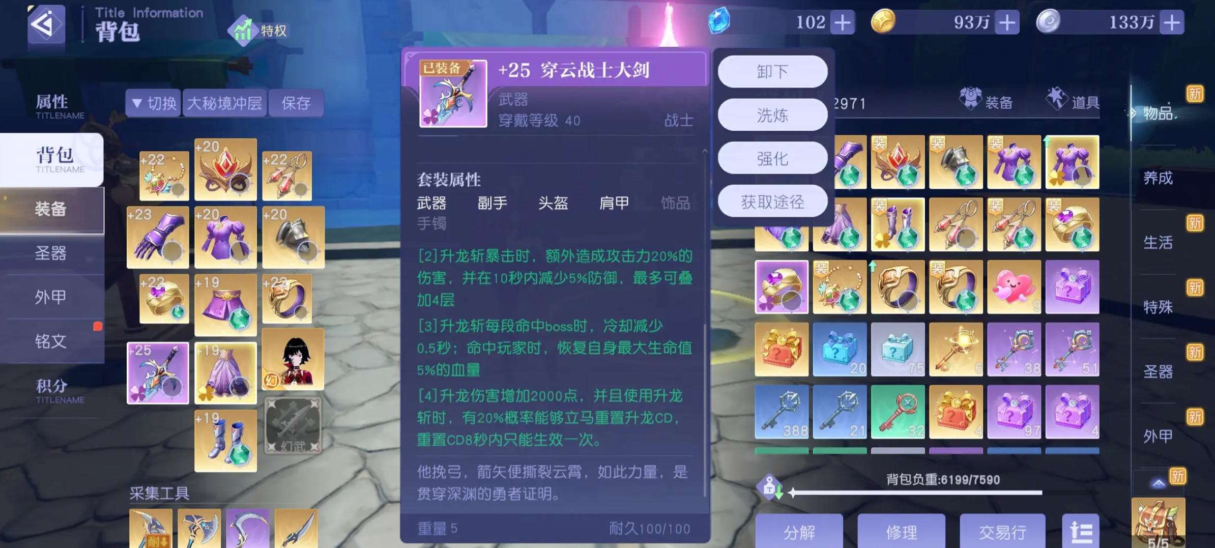 战士佩戴充能手镯后,在前排承伤的同时,能通过高频率攻击快速触发暴击收益,并联动生命回复效果——在队伍整体承压阶段,该手镯可提供可观的最大生命值恢复量,同步提升攻击力与暴击率,形成攻防一体的续航闭环。若进一步搭配穿云战士大剑,可显著强化升龙斩技能的暴击判定,实现技能倍率与额外伤害的双重提升,构成稳定的爆发输出链路。