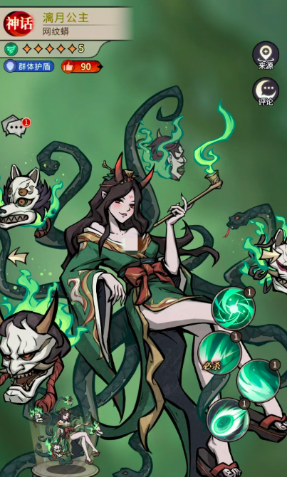 第二个推荐阵容是”魔镜王后 + 伊藤蛇之助 + 豌豆公主 + 漓月公主 + 女巫薇安 + 白娘子“。而整个团队的核心在于魔镜王后,这个角色拥有超强的反击能力,并且可以不断叠伤,属于越战越强的类型,但稳定保障性较差,所以需要豌豆公主、白娘子和尹腾蛇之助负责前期和中期的整体火力输出压制,尤其是豌豆公主,在整个团队当中非常重要,而漓月公主则提供团队护盾,女巫则是团队的奶妈。