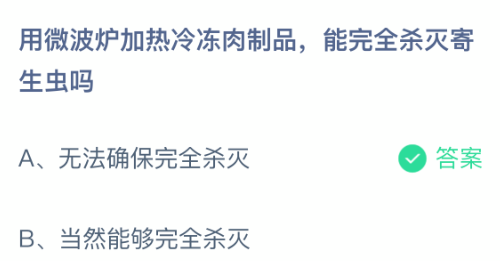 以上就是用微波炉加热冷冻肉制品,能完全杀灭寄生虫吗,支付宝蚂蚁庄园2026年1月13日答案最新,更多精彩内容,请点击关注更新!