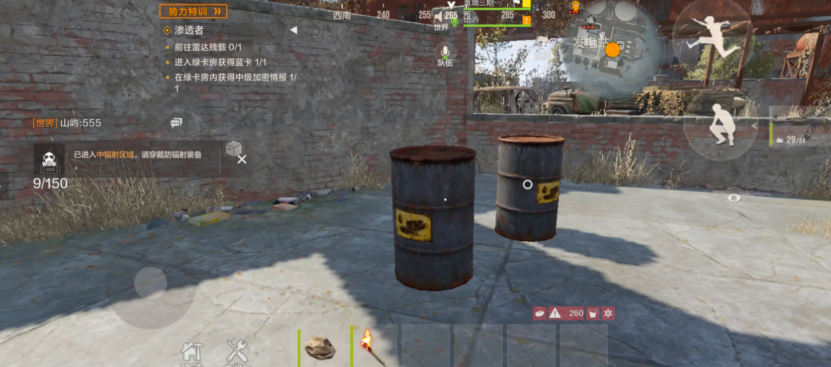 最后说说油桶的获取,这个东西是矿场采集的必需品。不同威胁等级的据点产出数量不一样。低威胁的大铁球据点,在铁球最顶端有两个油桶。中威胁的发电站,在电梯口旁边能找到2个。高威胁的火箭发射基地,左下角位置有一个。小型油井钻井平台这个地方比较特殊,每一层都会刷新油桶,加起来最少有4个。