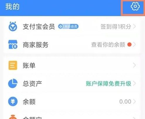 打开支付宝app,点击右上角的设置图标。
