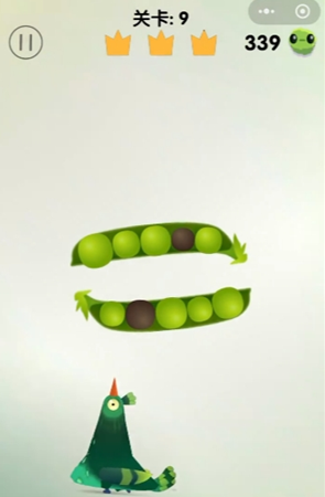 2、然后豌豆荚会转动,豆子的位置也会跟着变动,掌握好时机,将连在一起的青豆啄掉