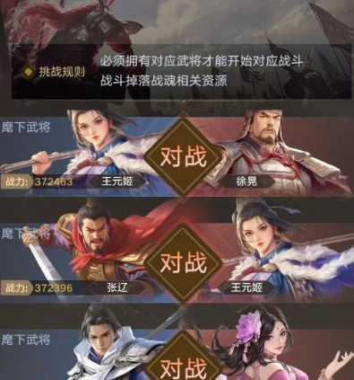 游戏在开局时就需要跟随着主线任务去推进,不仅可以熟悉剧情,还可以解锁基础功能。当等级达到5级时,三大核心PVE玩法就会逐步的开放,这就是资源累积还是武将升级的关键,必须要优先掌握。其中关键的就是单人挑战系列,这是新手容易上手的玩法。其中会包括名将挑战,武将单挑,过关斩将等一系列模块。其中名将挑战每天可以免费6次,可以用元宝额外购买次数,通关每一关都可以领取宝箱,累积总的星数就可以解锁高级宝箱。