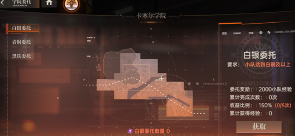 第二个功能是学院委托,同样在达到黑铁I之后开放。这个玩法需要消耗委托函来接取不同难度的委托任务,完成后能拿到历练经验作为回报。委托的等级越高,给的经验自然就越多,但有个限制条件,就是不能接取超过自身评级段位的委托。比如现在还停留在青铜段位,就没办法去做白银级的委托任务。委托函的来源比较广泛,参与各种玩法基本都有机会获得。