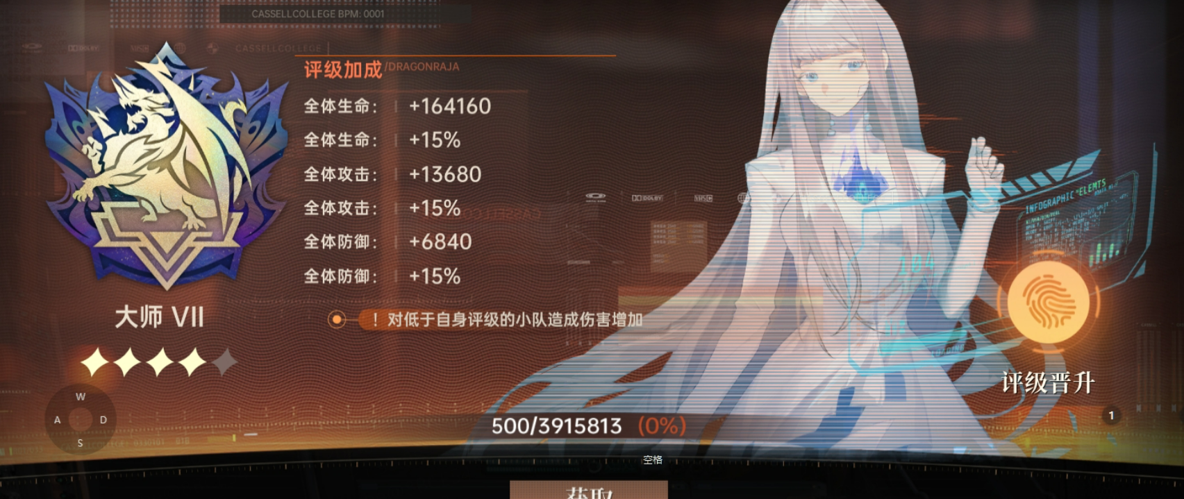 评级系统的重要性体现在很多方面。首先最直观的就是角色等级上限会随着评级提升而放开,如果评级卡在某个段位上不去,那队伍里的伙伴就算经验再多也升不了级。其次是进阶系统,角色的进阶次数上限同样受到评级制约。再往后一些章节的主线剧情也有评级要求,评级不够的话后续故事内容就看不到了。所以虽然这个系统看起来不起眼,实际上是整个游戏推进过程中的核心机制之一。