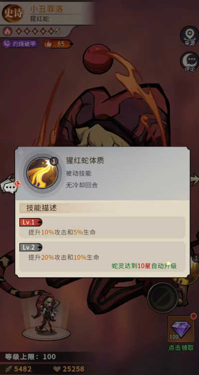 幻灵召唤师小丑菲洛怎么样?小丑菲洛是达到史诗级别的蛇灵,但是强度后期可以提升的上限不高,幻灵召唤师小丑菲洛怎么样主要是因为有灼烧破甲的效果,所以还是值得了解一下的,后期小丑菲洛是只有达到技能等级2的上限时,才可以有足够的技能效果可以用,目前他跟其他角色最大的区别就是没有技能3等级可以进行强化。