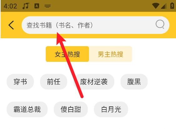 3、点击上方的搜索框,支持输入书名或作者进行查找小说。