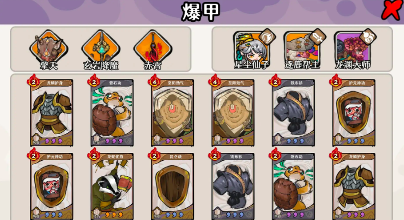 【土爆甲流】——稳定输出、手动可控、免赐福依赖型阵容 核心组合:星辰仙子 + 逐鹿帮主 + 龙渊大师 优势解析:主打持续爆甲+土系增益联动,输出节奏平稳,无需反复刷取特定赐福词条,降低随机性干扰。虽为手动操作流派,但整体动作逻辑清晰、响应反馈明确。推荐卡组:龙鳞护身×2、磐石功×2、至阳劲气×2、铁布衫×2、护元神功×2;额外携带龙蛇化势×1。相较而言,纯行动流派在此副本中输出表现偏弱,且操作精度要求更高,不建议优先选用。