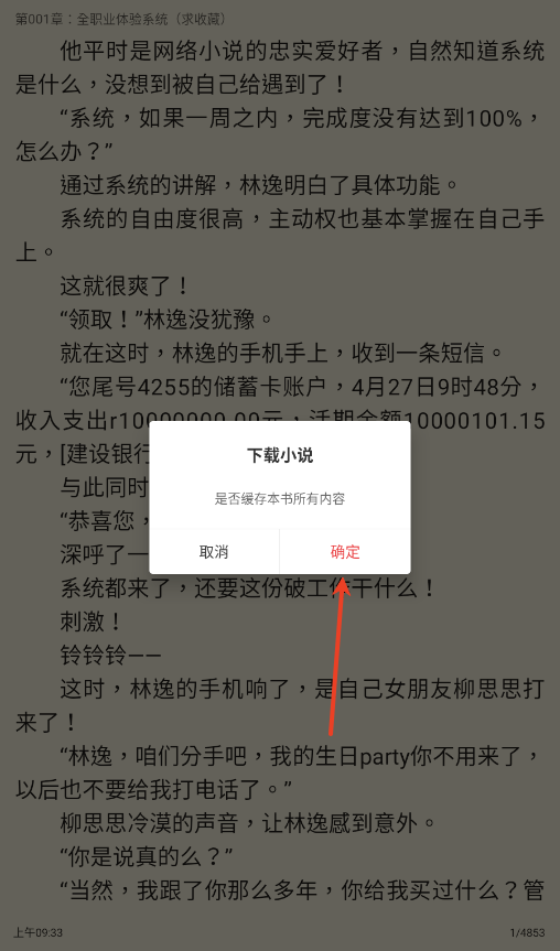 1.立即阅读一本小说,进入阅读界面。