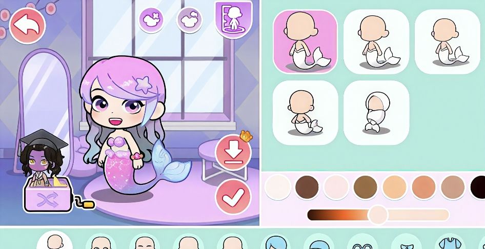 人鱼海湾采用模块化场景架构,涵盖多元功能空间:包括提供主题餐饮服务的美人鱼餐厅、承载仪式感交互的美人教堂,以及支持实时多人参与的海底派对场地。所有场景均通过地图界面图标直连跳转,角色支持无边界自由拖拽移动。系统内置双人协同动作引擎,当两名玩家完成预设配合指令(如共舞、托举、合奏等),即可触发专属剧情动画与状态反馈,强化社交沉浸深度。
