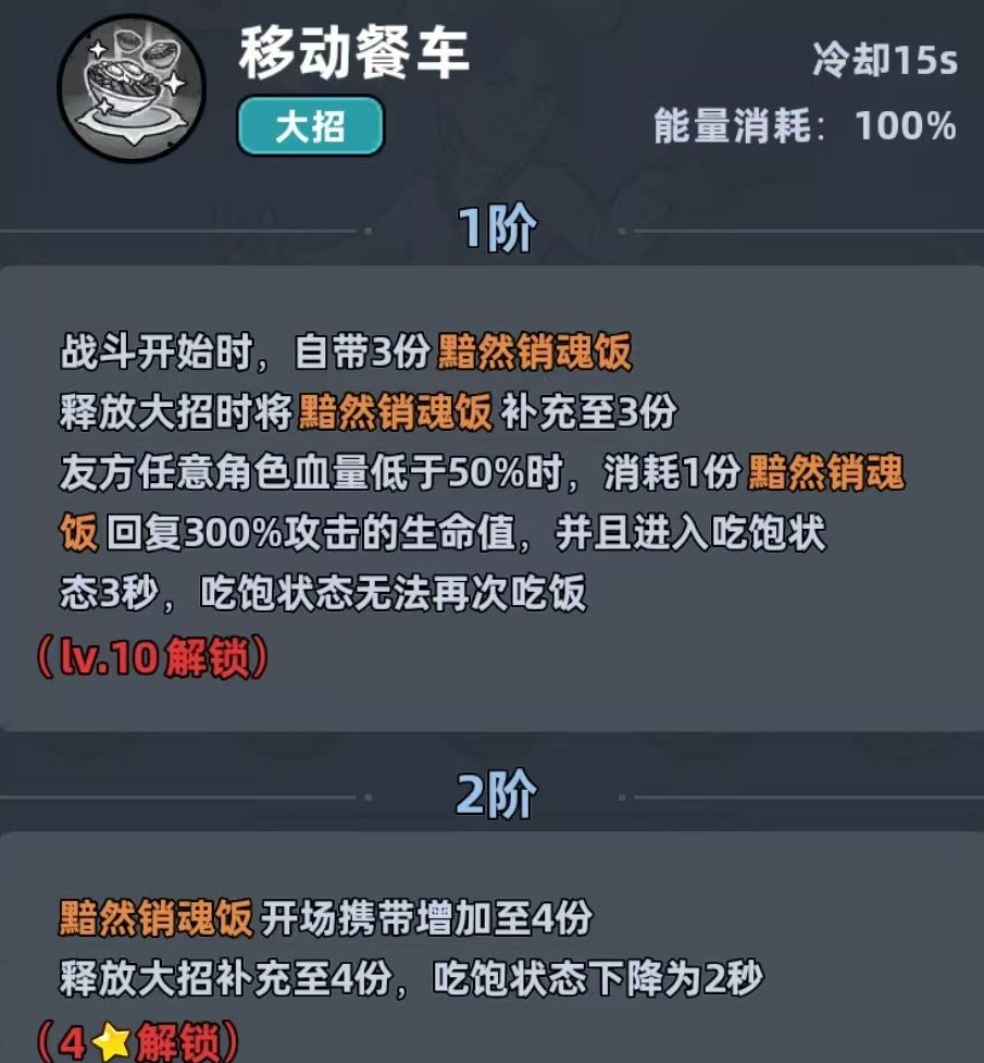厨神隶属于异能系羁绊,核心能力聚焦于持续回血与能量供给。其主动技能可对生命比例最高的友方单位投喂美食,每1秒恢复大量生命值,效果持续时间长且支持多层叠加;大招“黯然销魂饭”在战斗初始即自动生效,当任意队友生命值低于50%时,可即时消耗该效果为其恢复生命。相较之下,医疗老兵归属物理系羁绊,主打群体治疗与净化控制。其主动技能可同时治疗四名友军,并为全体友方清除两个随机非玩家施加的减益状态,具备不可替代的驱散价值。
